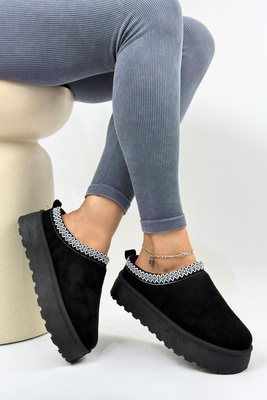 Dámská domácí obuv, černé kožešinové pantofle s medvídkem