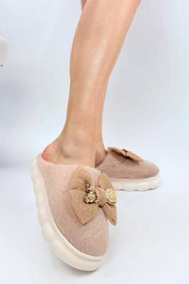 Kožešinové slip-on slip-on pantofle s mašlí v růžové barvě