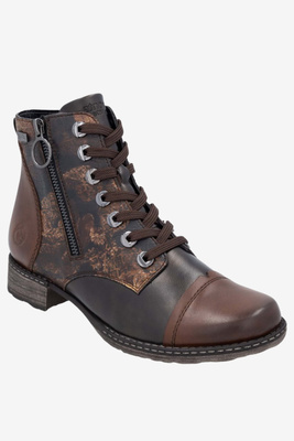 Hnědočerné kotníkové boty na klínku s předním zipem, Rieker