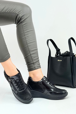 Černé lakované kotníkové boty značky Filippo